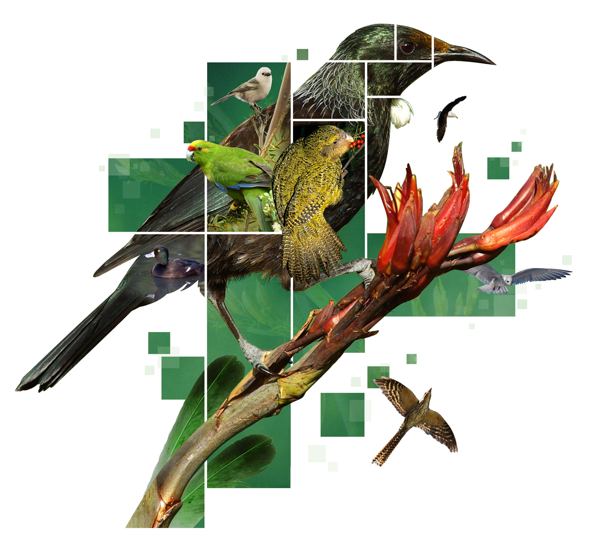 I was commissioned to create a series of Montages for Kāinga Ora (Sea creatures, land creatures & Birds), primarily using existing photos from their stock library, with the focus around one main creature, & a variety of supporting native NZ creatures.